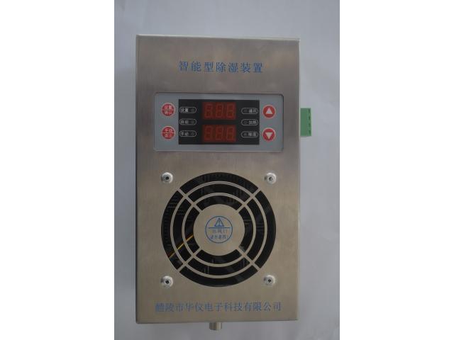 當(dāng)潮濕空氣經(jīng)風(fēng)扇吸入后,通過(guò)特殊設(shè)計(jì)的風(fēng)道流動(dòng),先經(jīng)半導(dǎo)體制冷器降溫結(jié)露,制冷器的結(jié)露在重力作用下滴入引水槽,再由導(dǎo)水管流出柜外。在設(shè)定啟動(dòng)值內(nèi)經(jīng)過(guò)充分循環(huán)除濕,使柜內(nèi)空氣濕度降至結(jié)露點(diǎn)以下,完成整個(gè)防潮引凝加熱過(guò)程。同時(shí),智能型除濕裝置信號(hào)采集傳感器外置,能實(shí)時(shí)準(zhǔn)確的采集到柜內(nèi)的真實(shí)濕度,保證智能型除濕裝置在柜內(nèi)將要達(dá)到凝露條件時(shí)提前啟動(dòng)除濕。