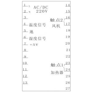 6、輸出接點(diǎn):(1)AC220V,3A,可帶交流風(fēng)扇(2)AC220V,3A,可帶加熱器